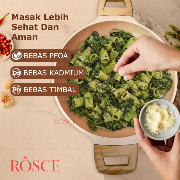 ROSCE CASSEROLE 24CM Panci soup kuah dutch oven granit marble anti lengket TUTUP KACA & STEAMER DC
