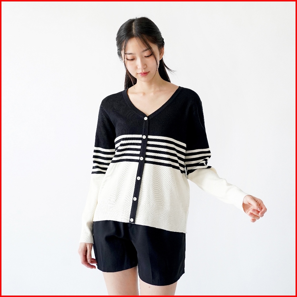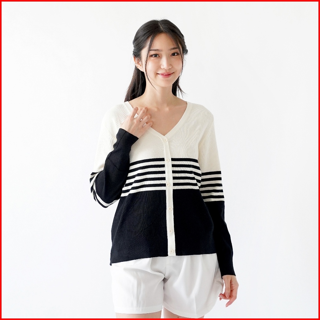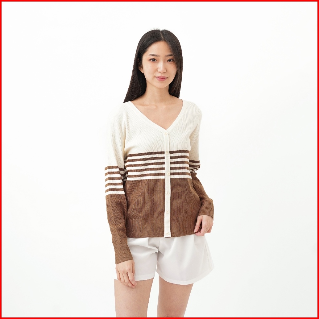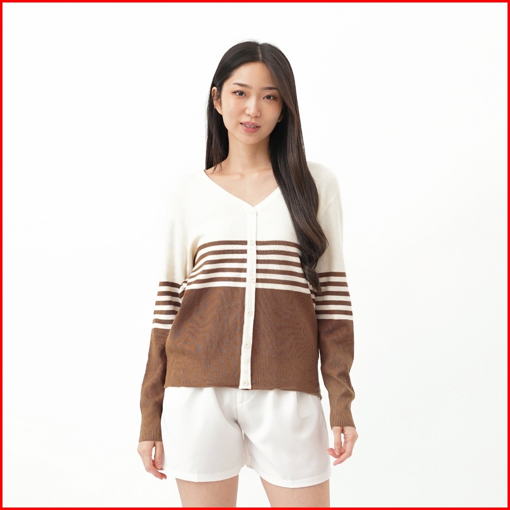 Queentin Sweater Wanita Rajut 126 Viscose Polyamide Knit Motif Salur Lengan Panjang