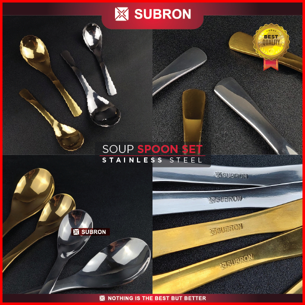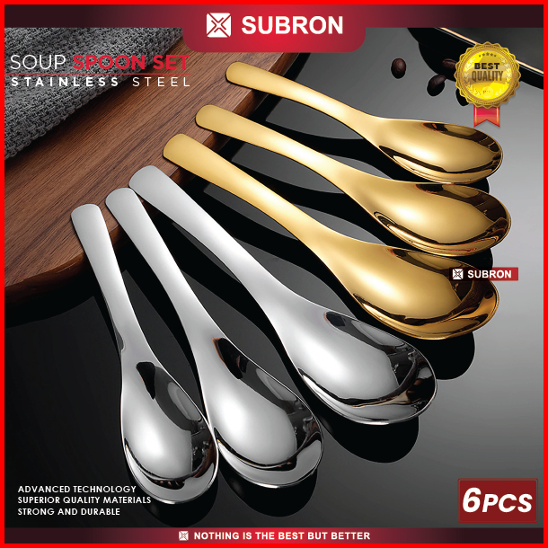Subron Soup Spoon Sendok Bebek Set 6pcs Sayur Kuah Bubur Alat Makan Besar Kecil Stainless Siler
