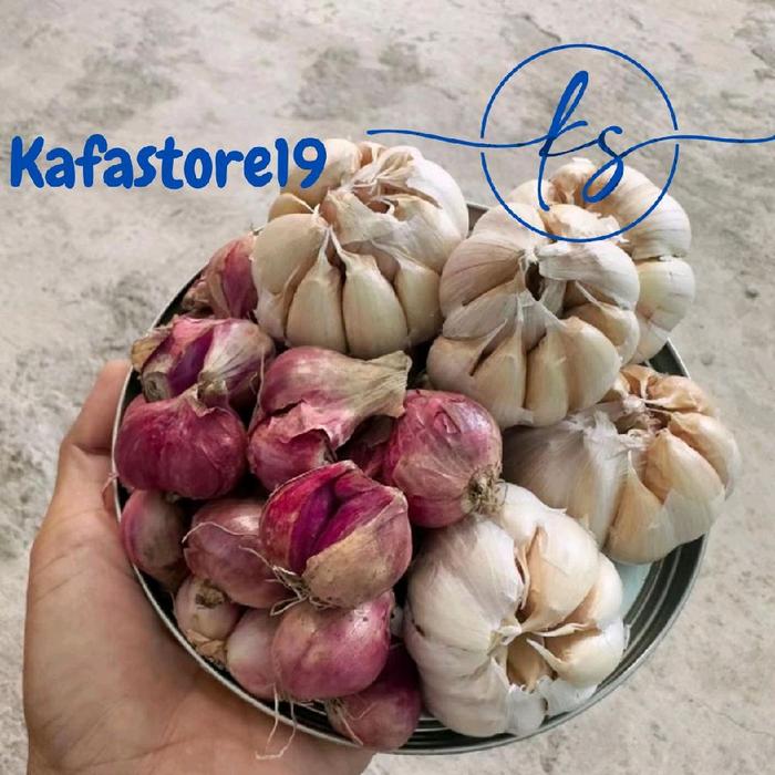 MIX BAWANG MERAH DAN BAWANG PUTIH 500GR 1KG Spices Rempah Garlic - 250gr bawang merah + 250gr bawang putih