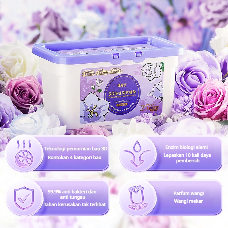 Parfum laundry/Detergent Kapsul Laundry Pods 3 in 1[25 pcs] - Wangian Lemon & Rose, 10X Kekuatan Ampuh Angkat Noda, Anti