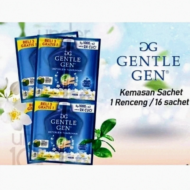 Gentle Gen Detergen Cuci Baju 3 in 1 dengan Pelembut dan Pewangi 80ml 16pcs