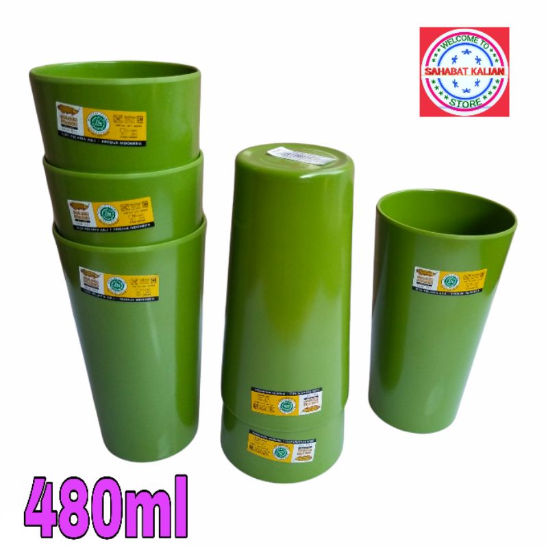 (6 Gelas) Gelas Melamin en Dragon B0402 Hijau Tua 480ml