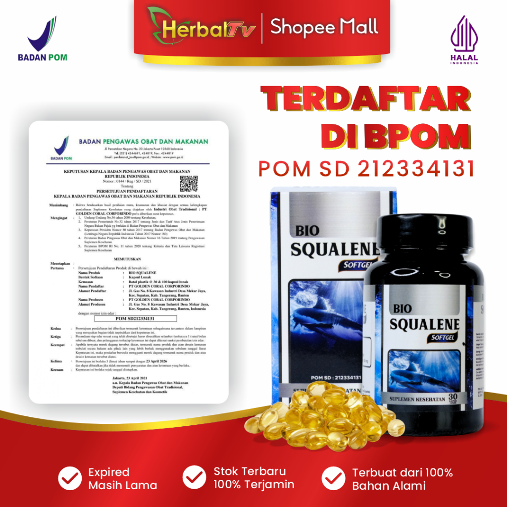 Softgel 30 Kapsul Suplemen Herbal Bpom Resmi Halal Mui Fish Liver Oil Kaya Omega 3 Epa Dha Minyak Hati Ikan Hiu Bio Squa