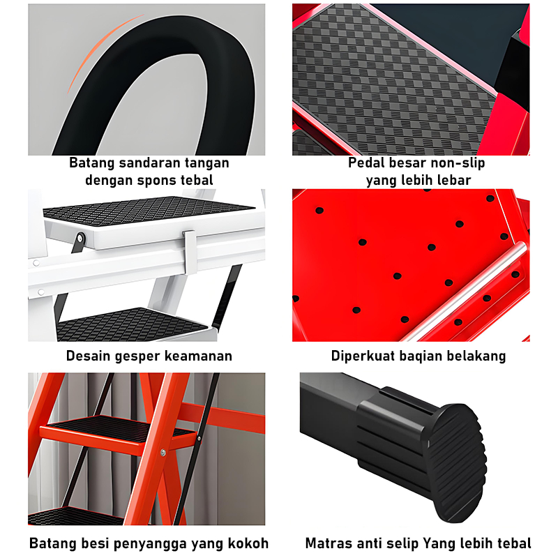 [Star]Tangga berlapis bubuk premium Kaki karet elastis Tangga lipat aluminium tangga lipat aluminium tangga kayu