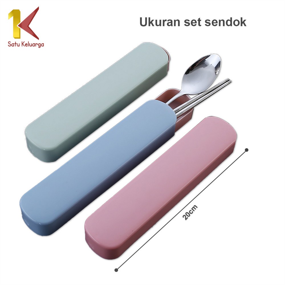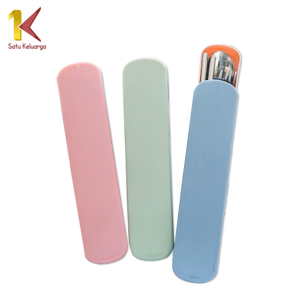 Satu Keluarga Sendok Set 3IN1 C495 Alat Makan Sendok Garpu Sumpit Set Stainless Steel Portable Dengan Kotak Praktis