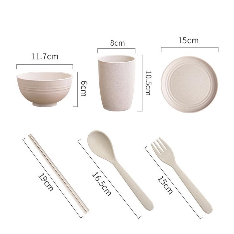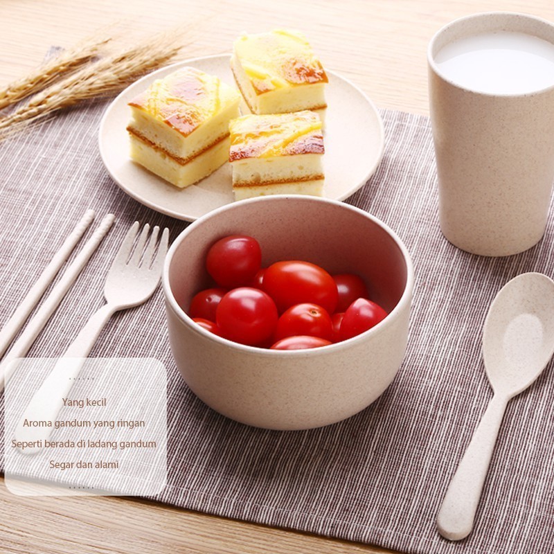 [Ada Stok]6pcs Peralatan makan portabel anak-anak sendok sumpit jerami gandum mangkuk dan cangkir VS-12