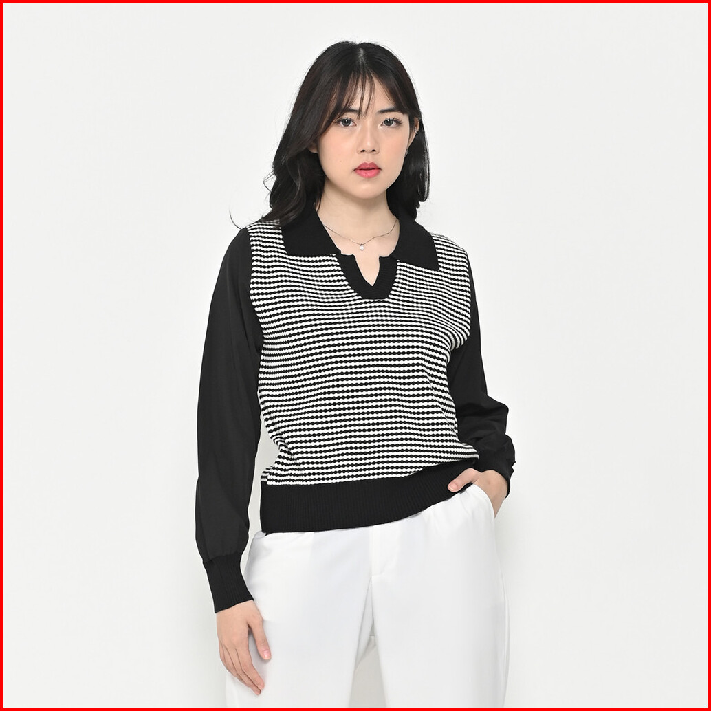 Queentin Sweater Wanita Rajut 06 Purl Knit Kombinasi Sifon Lengan Panjang