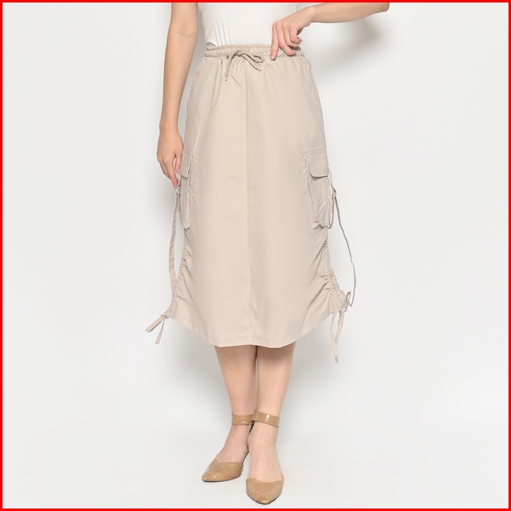 Queentin Rok Kargo Serut Casual Wanita 0389 Katun Chinos Drill Stretch Polos Premium