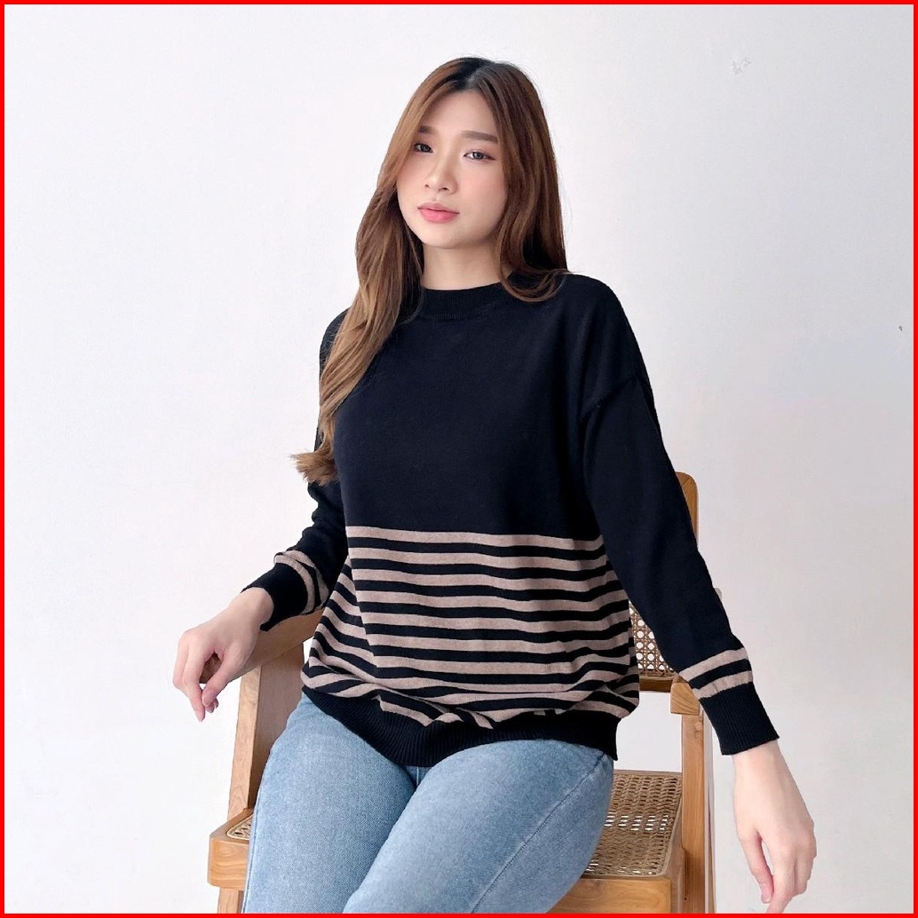 Eiko Knit Tops - Sweater Rajut Katun Wanita Motif Garis Garis