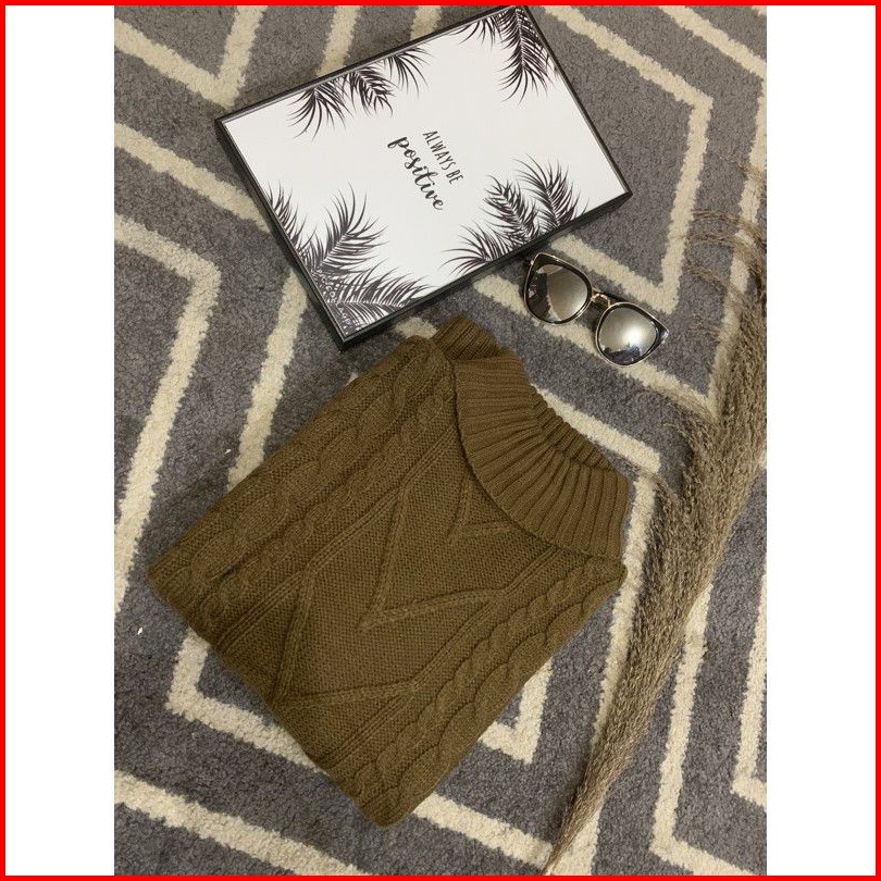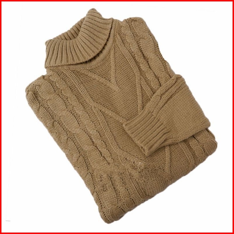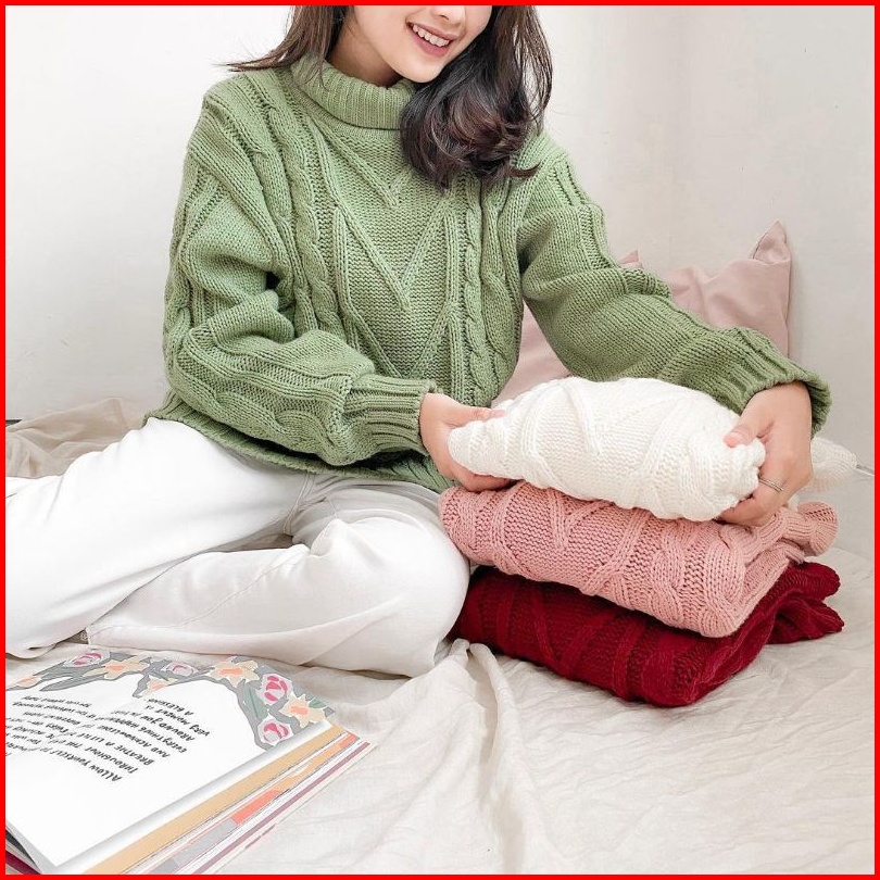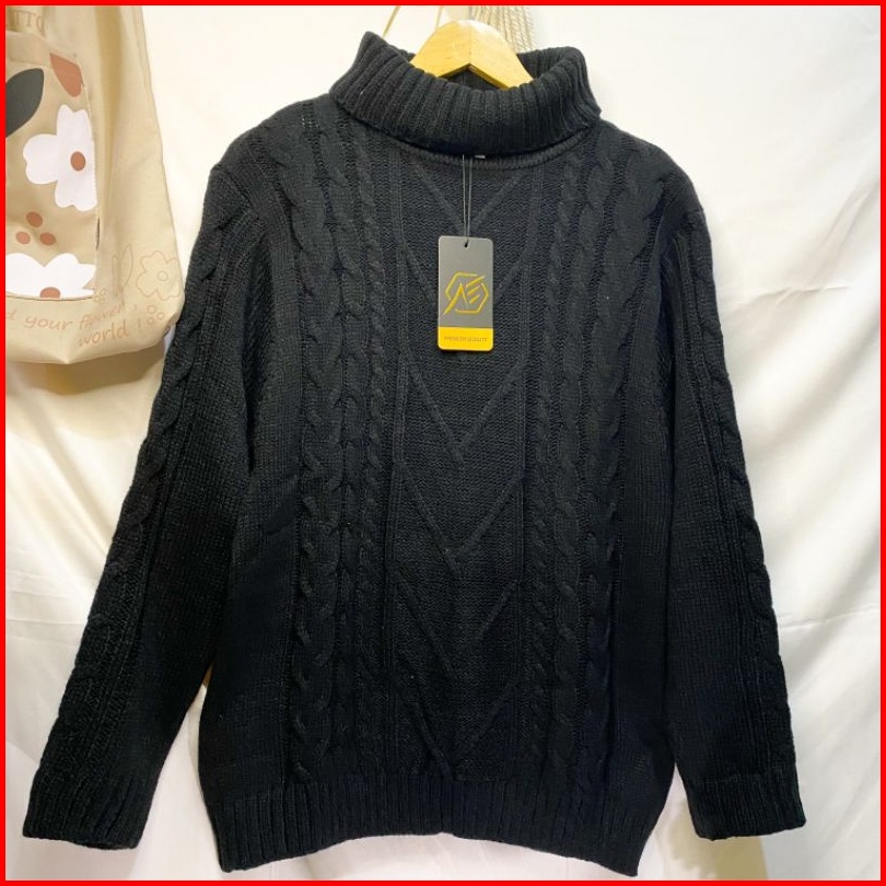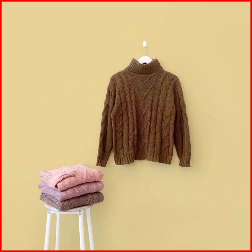 Turtleneck Knit Sweater Cable Kerah Tinggi Bahan Premium