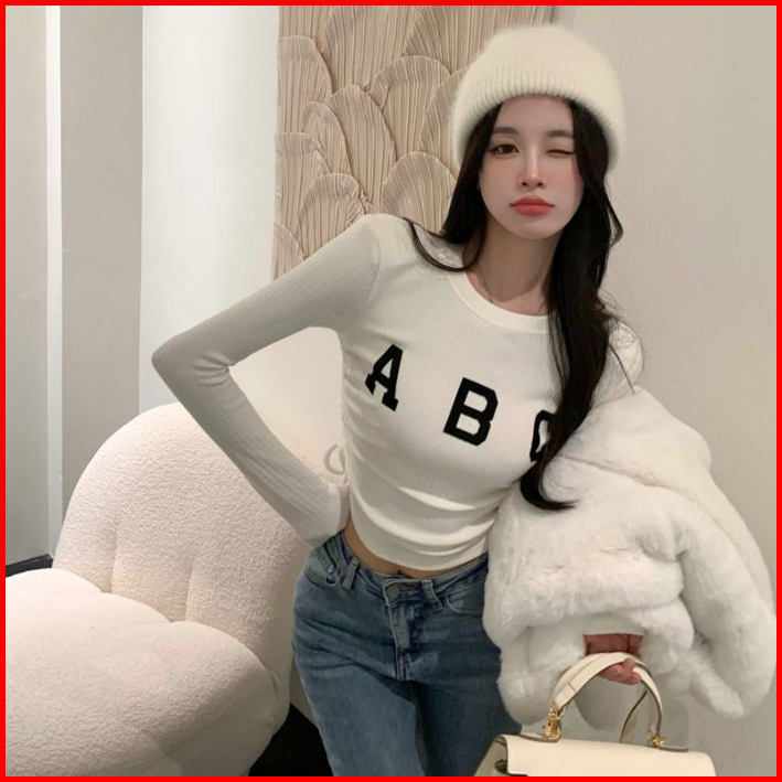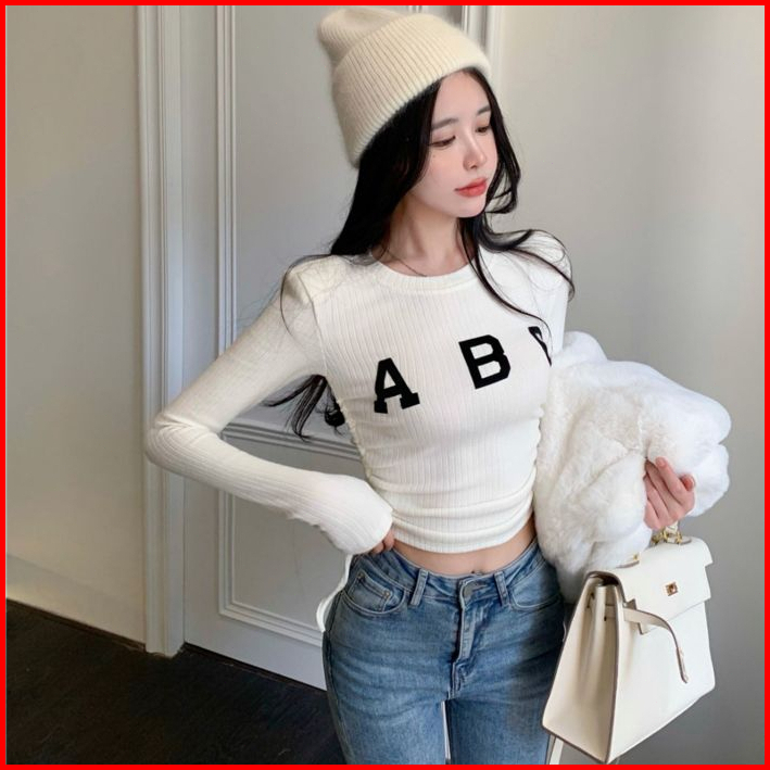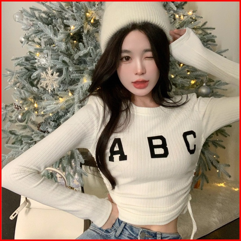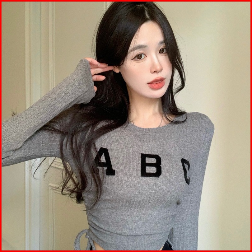 Yiyi Girl Atasan Wrap Top Wanita Kekinian Korean Crewneck Lengan Panjang Casual Top