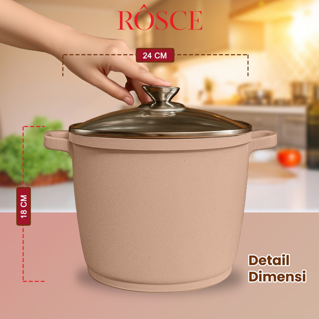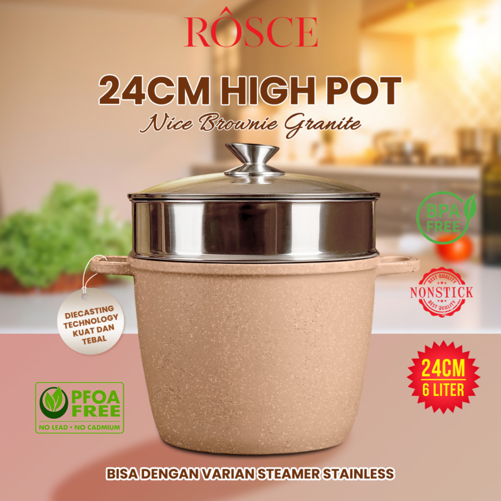 ROSCE HIGH POT DC Panci gentong stock pan 24cm anti lengket granit INDUCTION tutup kaca steamer