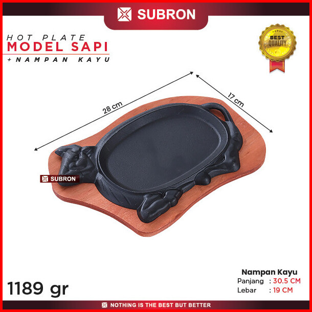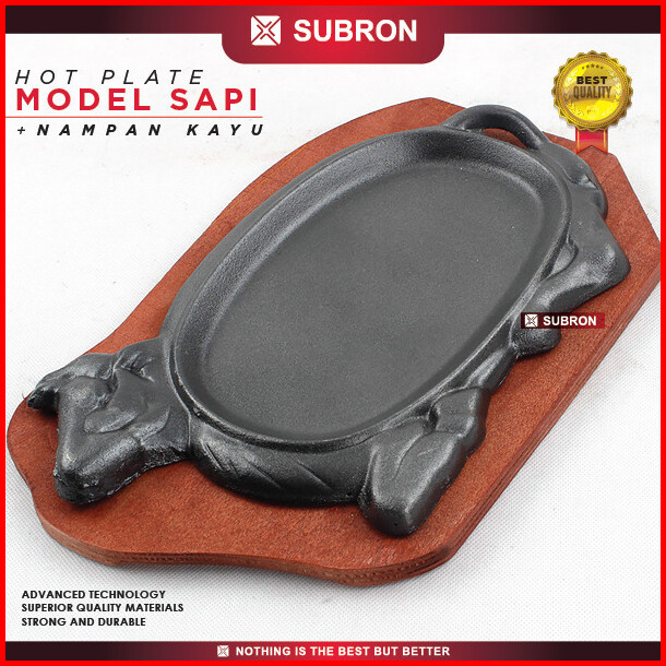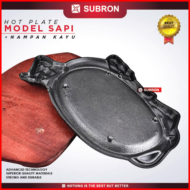 Subron Hot Plate Model Sapi Nampan Kayu Piring Steak Hitam Iron Cast