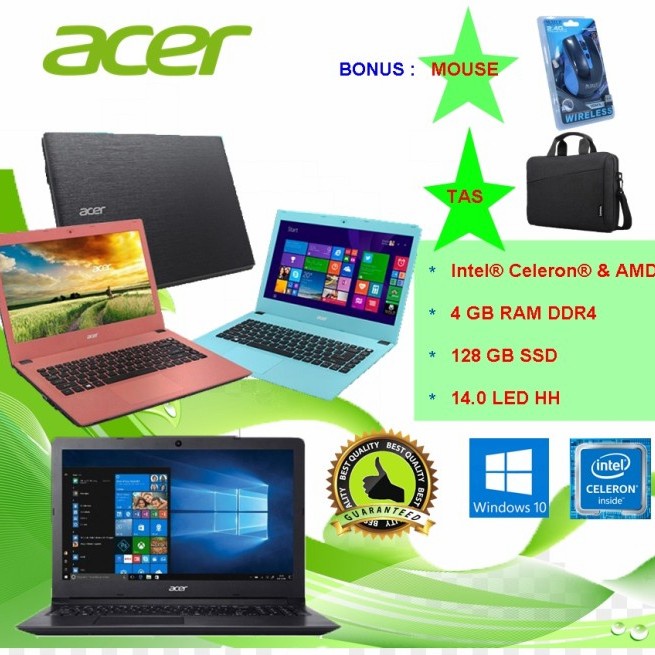 LAPTOP ACER NEW GARANSI 1 TAHUN RAM 4GB SSD 128GB 14" WIN10 RESMI