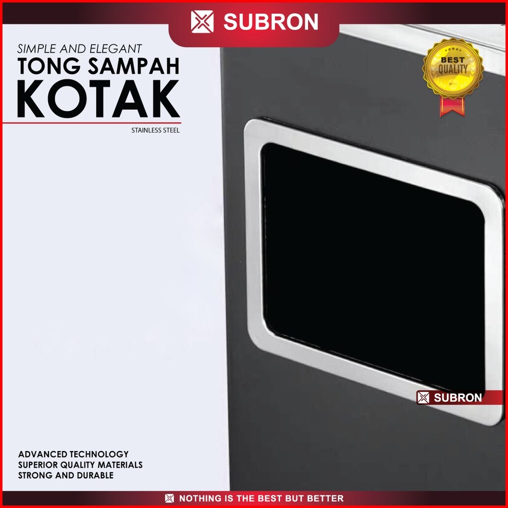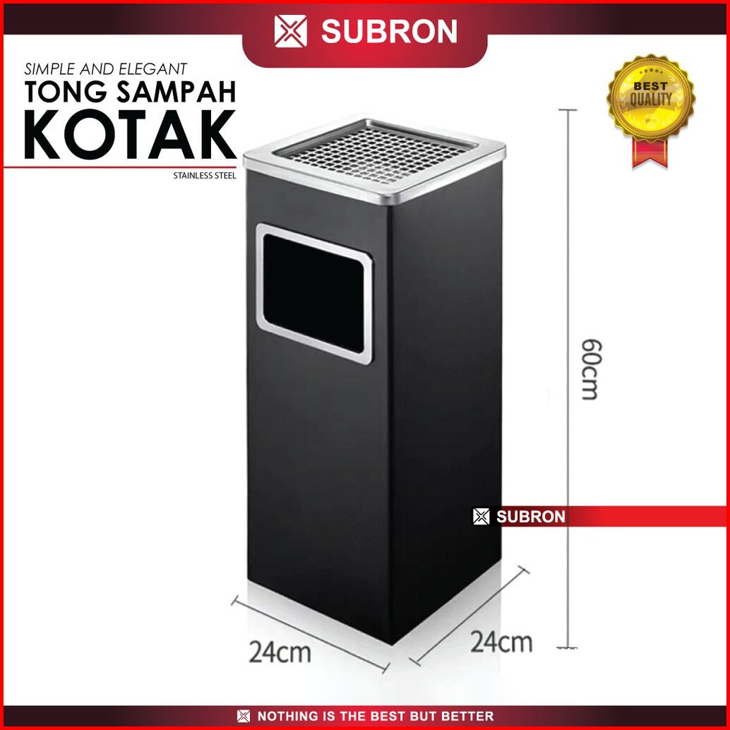 Subron Tong Sampah Kotak Hitam Silver Tempat Wadah Stainless Steel Asbak Kotak Hotel Mall