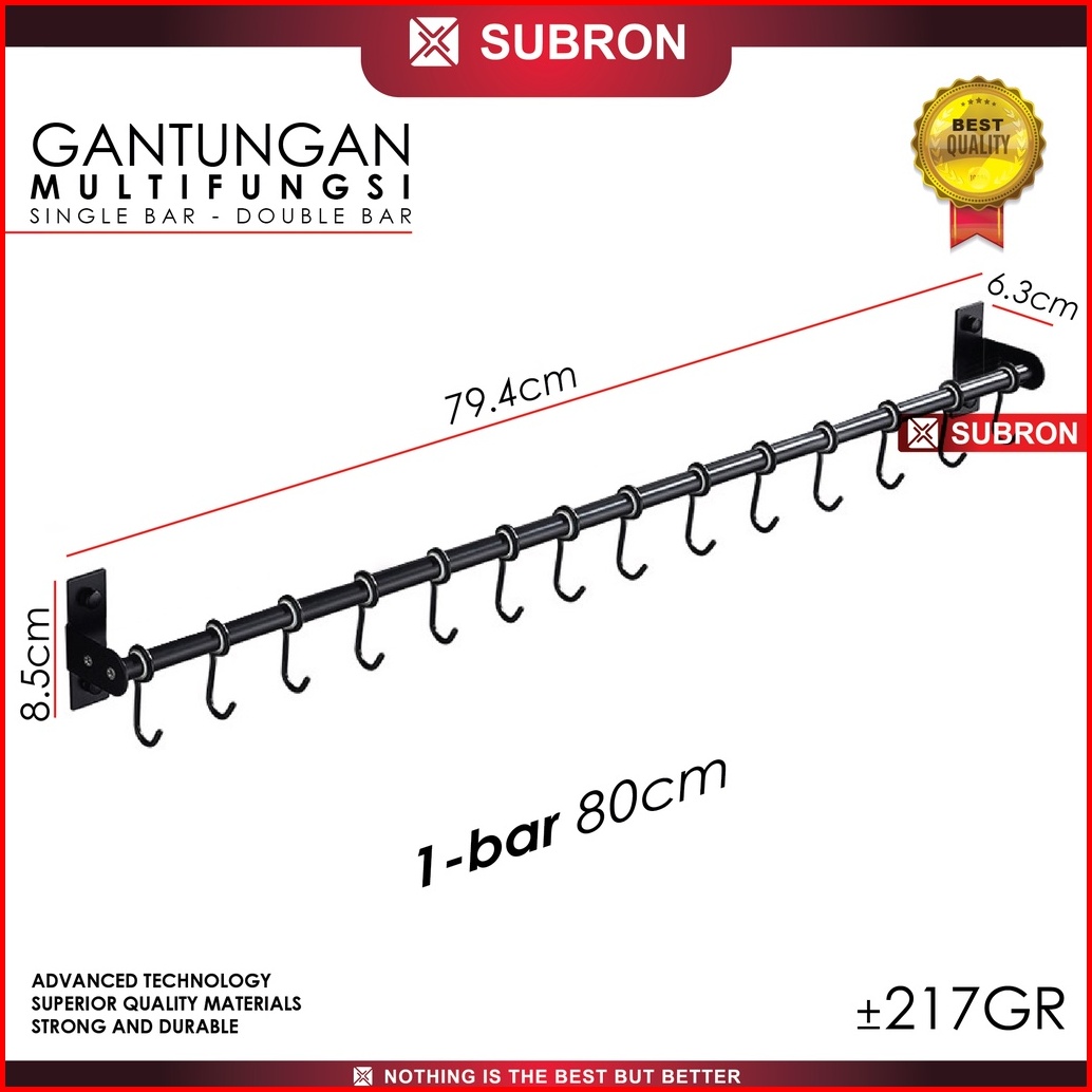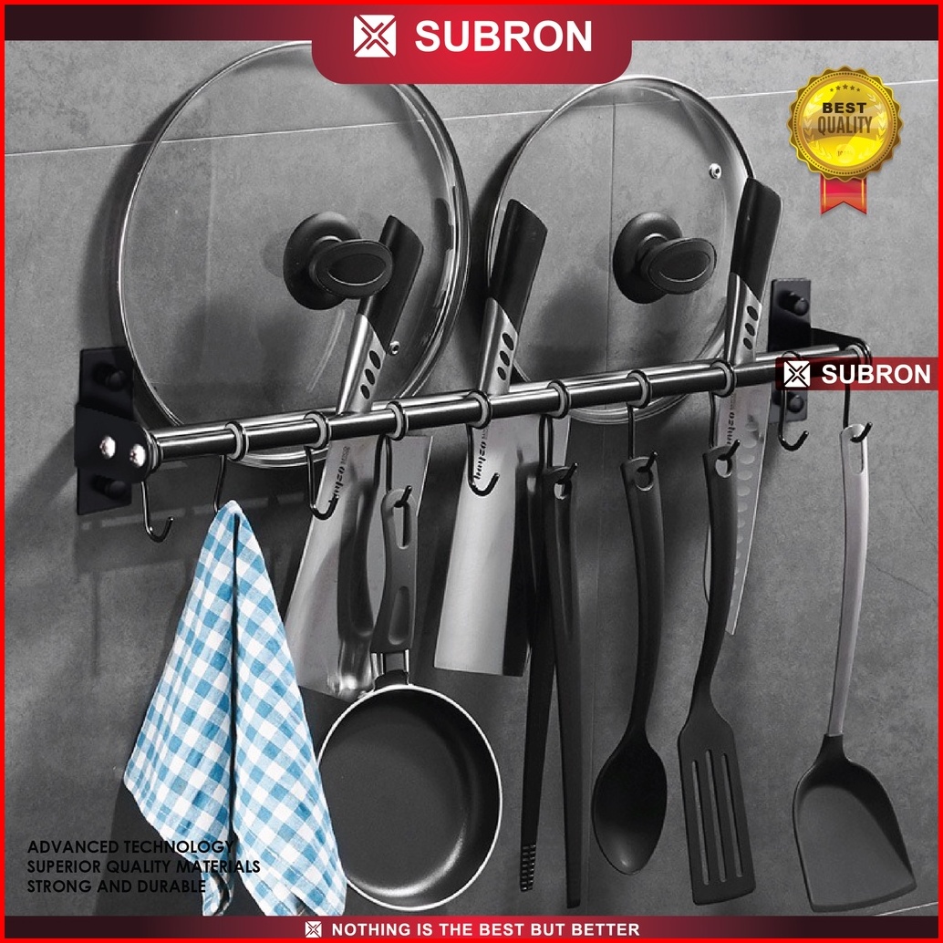Subron Kitchen Bar Hitam Doff 80cm 100 Cm Rak Gantungan Dapur Pisau Sutil Panci Stainless Steel