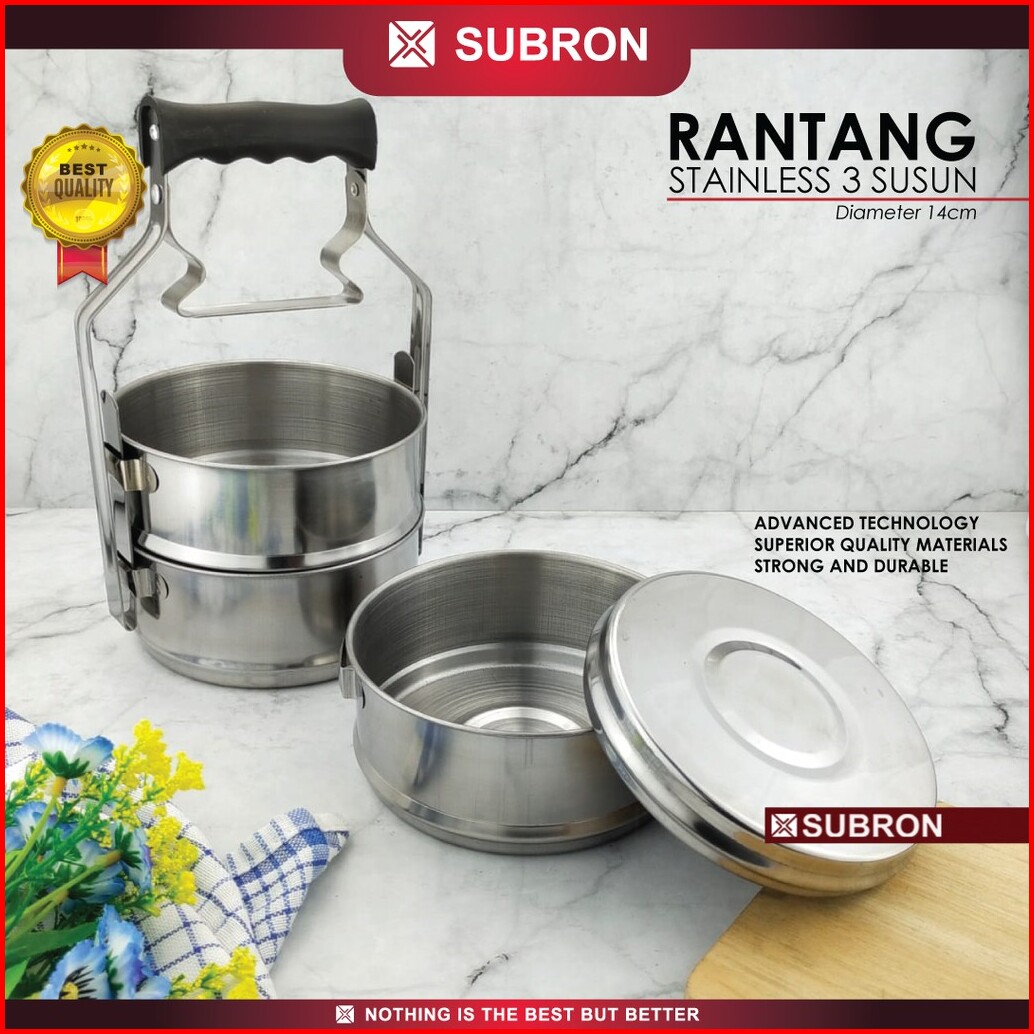 Subron Rantang Stainless 3 Susun Diameter 14cm 16cm Wadah Tempat Sayur Makanan Lunch Box