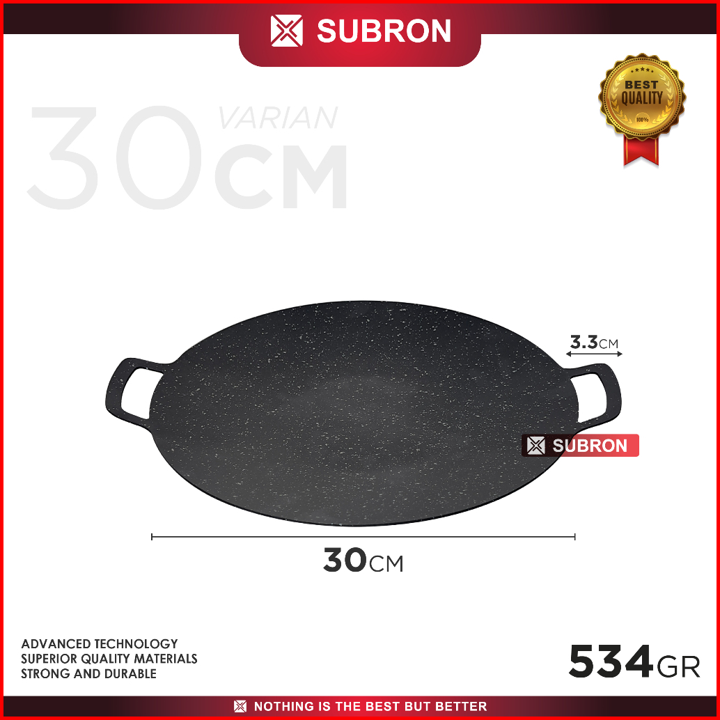 Subron Wajan Bulat Pemanggang 34cm 36cm 38cm Anti Lengket Grill Daging Sosis Barbeque Korean Bulat Datar Bbq Multifungsi