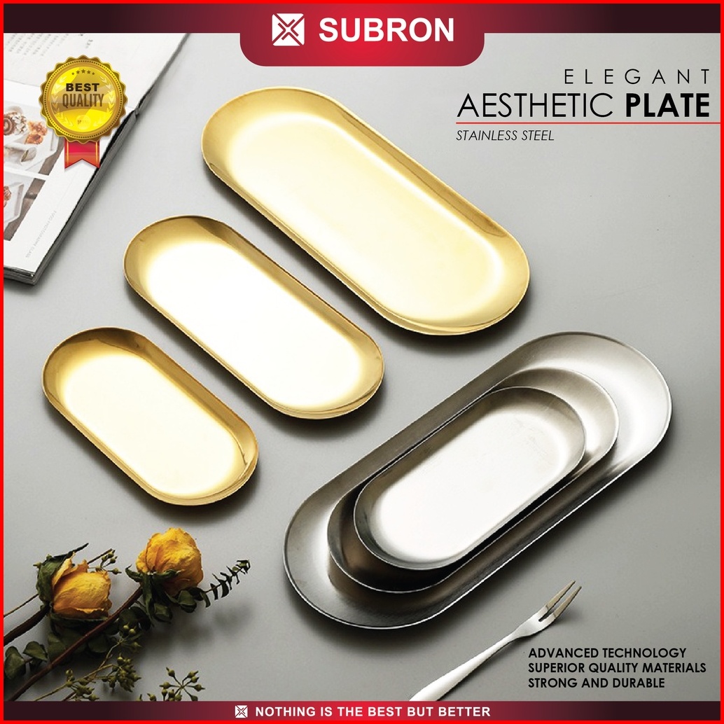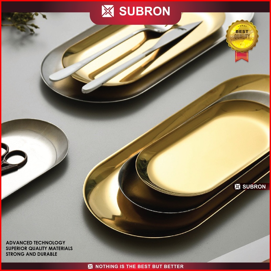Subron Nampan Piring Oval Perak Tray Silver Aesthetic Stainless Kilap Elegan Cantik Wadah