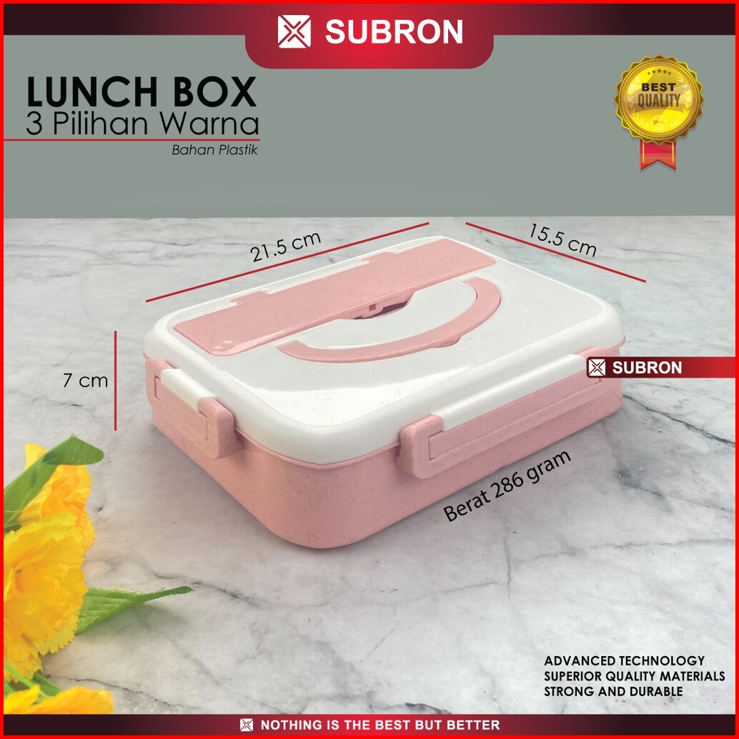 Subron Lunch Box Kotak Makan Bekal Sendok Sumpit Plastik Warna Biru Hijau Pink 3 Sekat
