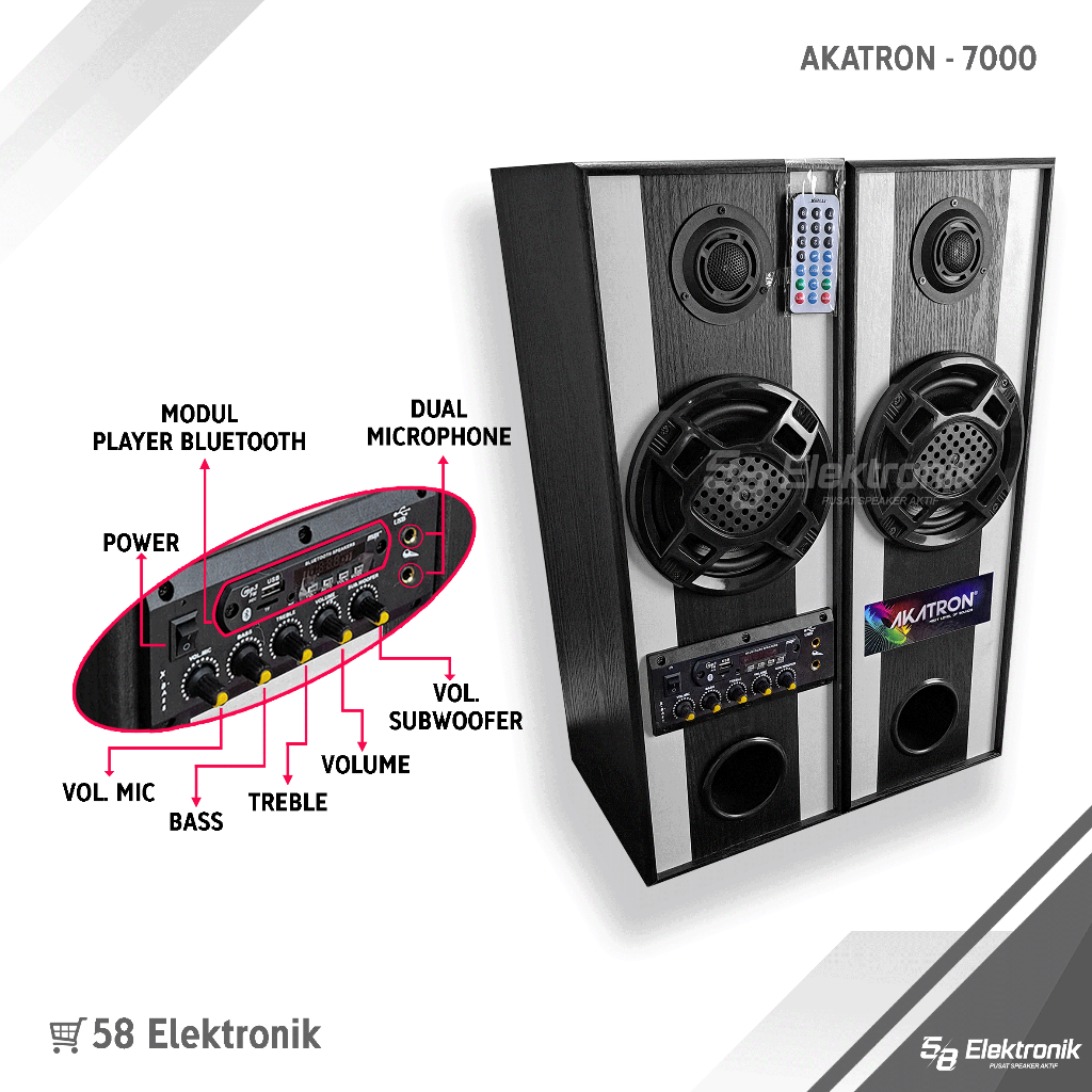 Akatron 7000 - 6.5 Inchi Speaker Aktif Bluetooth Karaoke Sound 6.5Inch Double Subwoofer Bass Mantab
