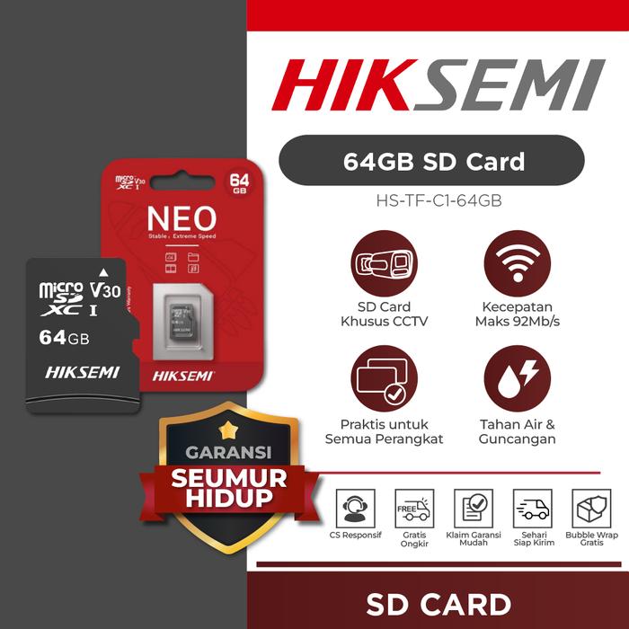 SD Card Hiksemi Original Class 10 Kecepatan 92MB/S Garansi Seumur Hidup Untuk CCTV