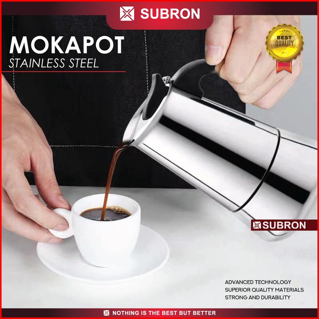 Subron Manual Espresso Coffee Maker Mokapot Stainless 2 Cup 100ml