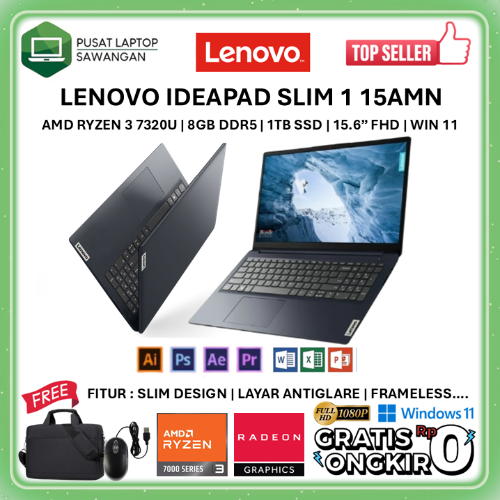 LAPTOP LENOVO IDEAPAD SLIM 1 15 AMD RYZEN 3 7320U 8GB SSD 512GB FHD WINDOWS 11