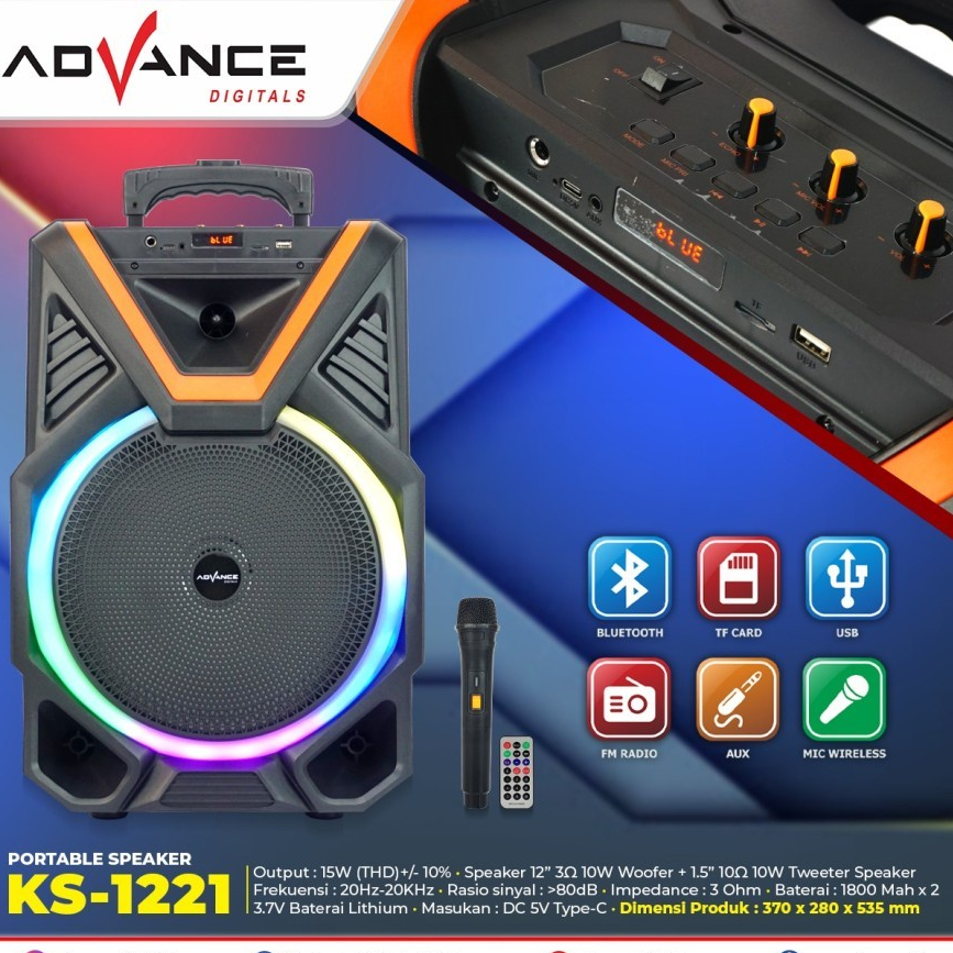 Speaker Advance Ks-1221 12Inci Meeting Bluetooth Portable + Mic Wireless Ks-2613 Karaoke Pengajian