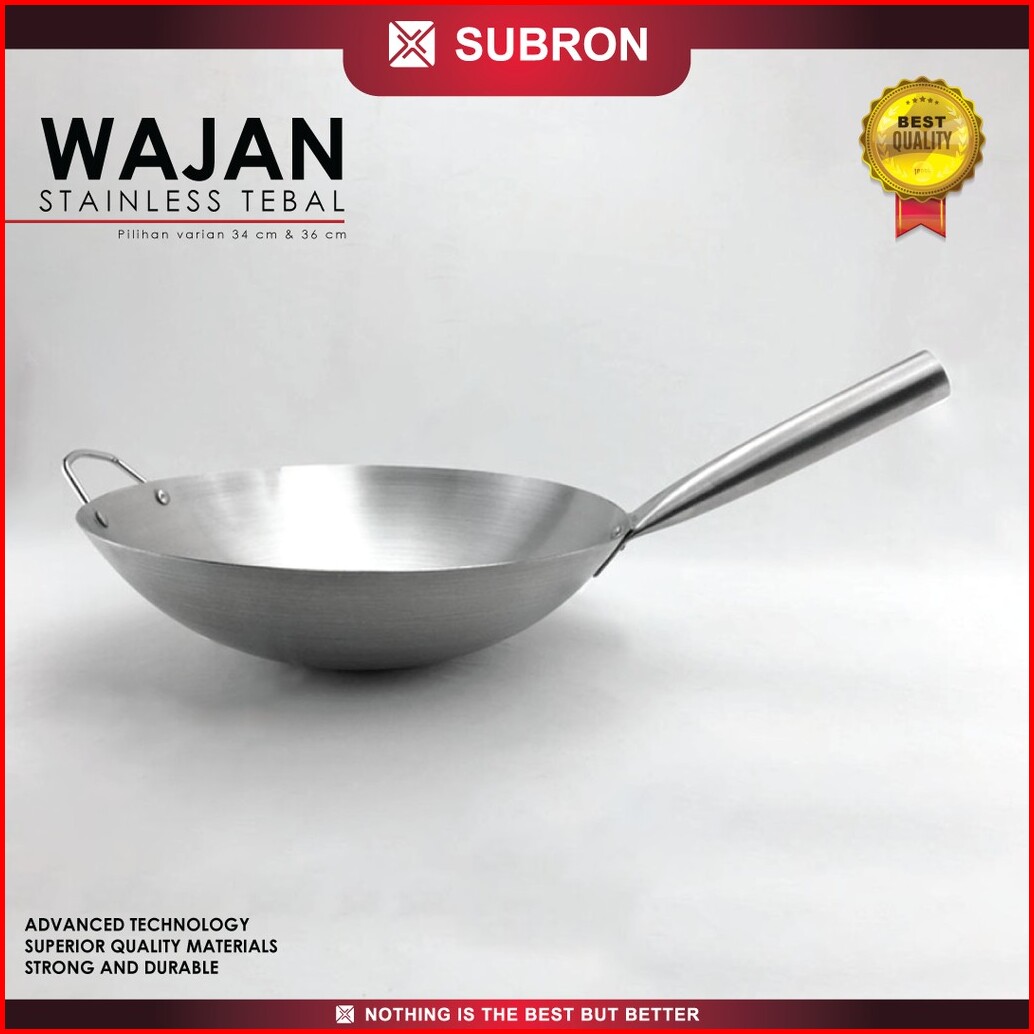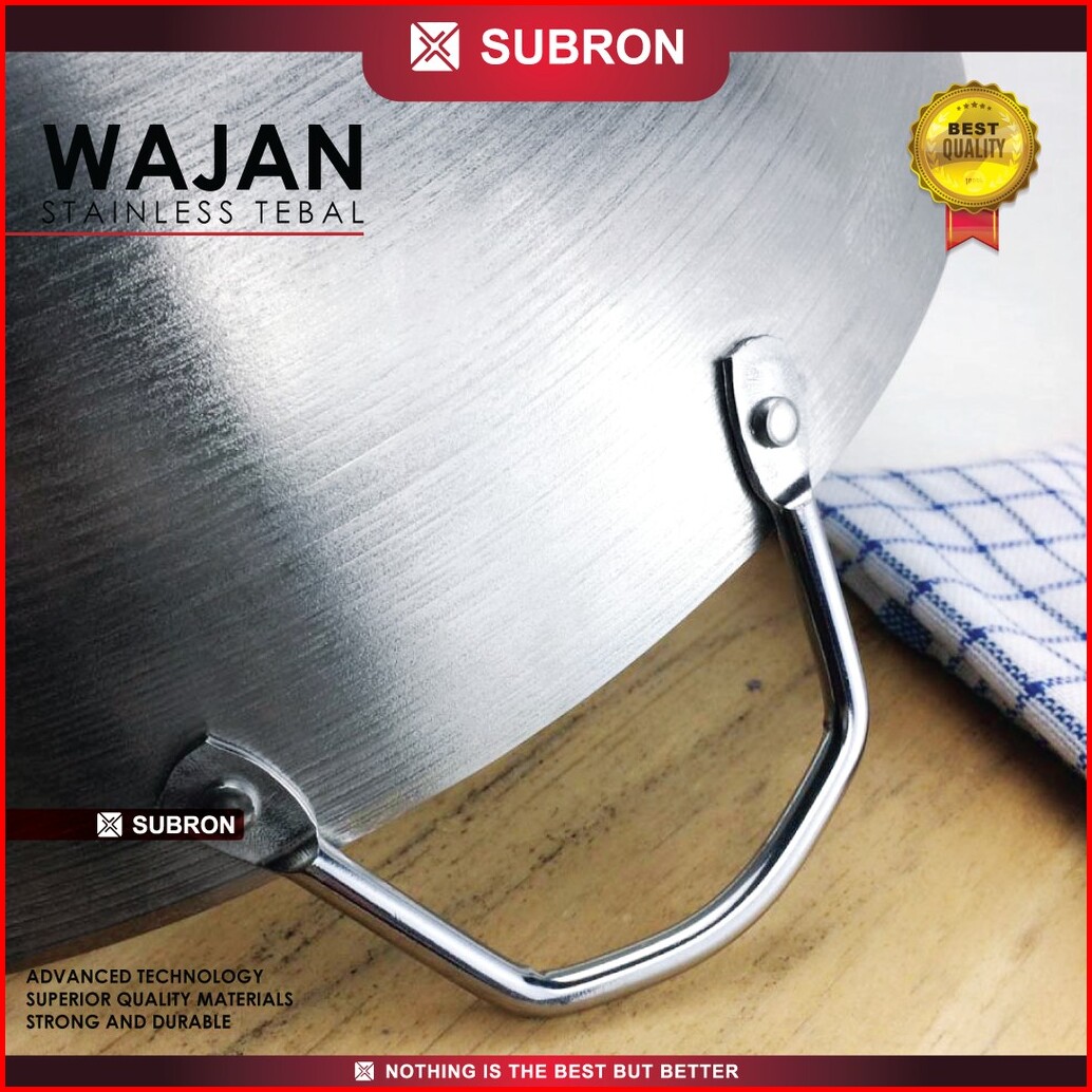 Subron Wajan Kuali Wok Stainless Pegangan 34cm 36cm Tebal Kuat Kokoh Penggorengan