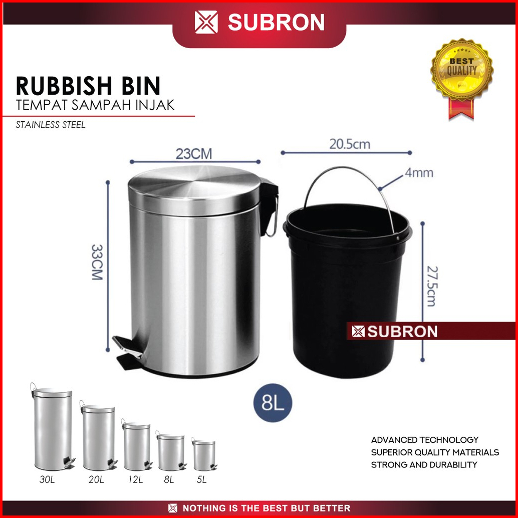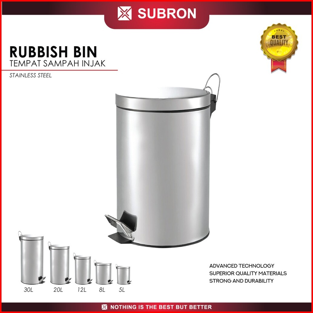Subron Tempat Tong Sampah 8 Liter Stainless Variasi Hidrolik Mekanik Injak Rubbish Bin Rumah