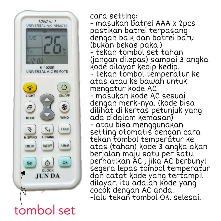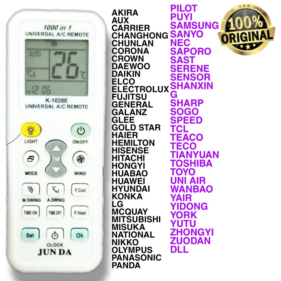 REMOTE AC MULTI / UNIVERSAL 1000 IN 1 JUN DA K-1028E HIGH QUALITY
