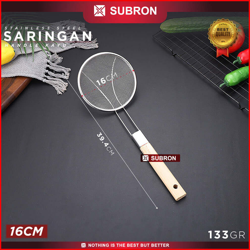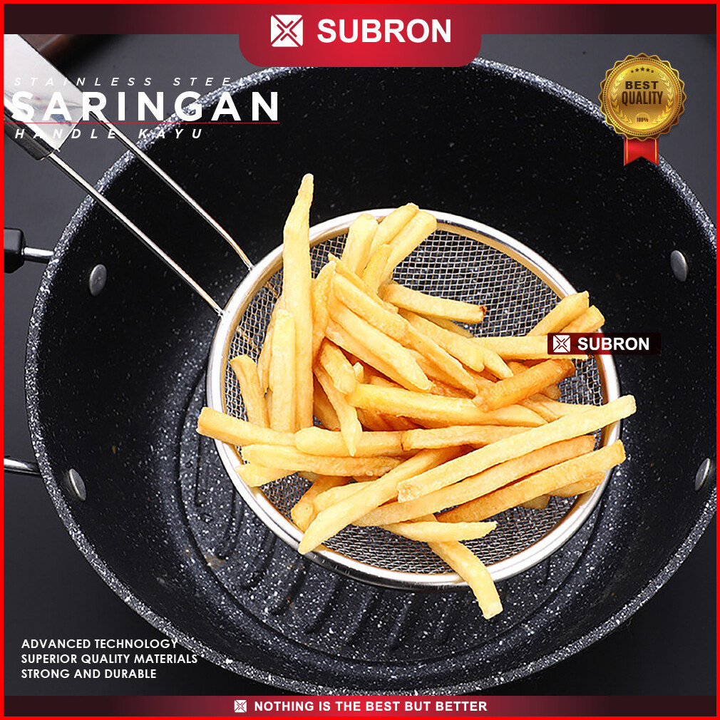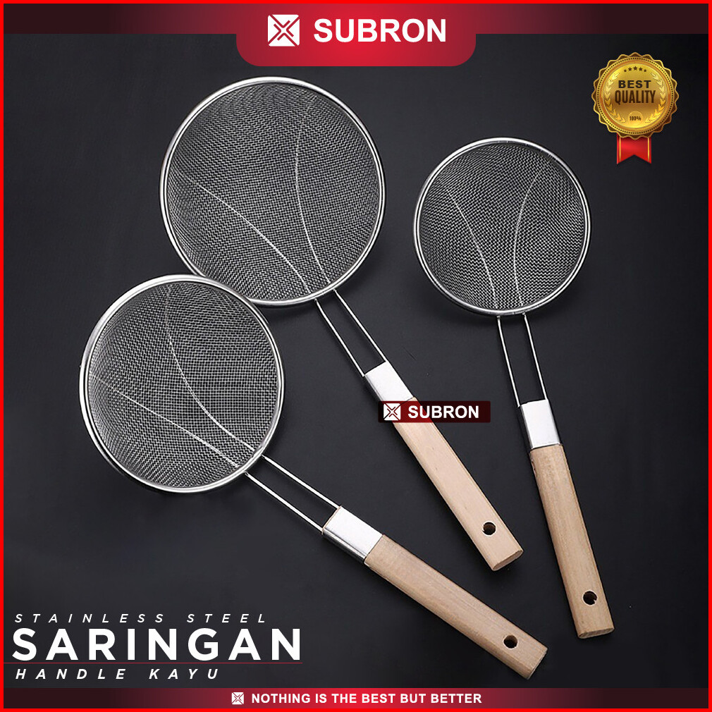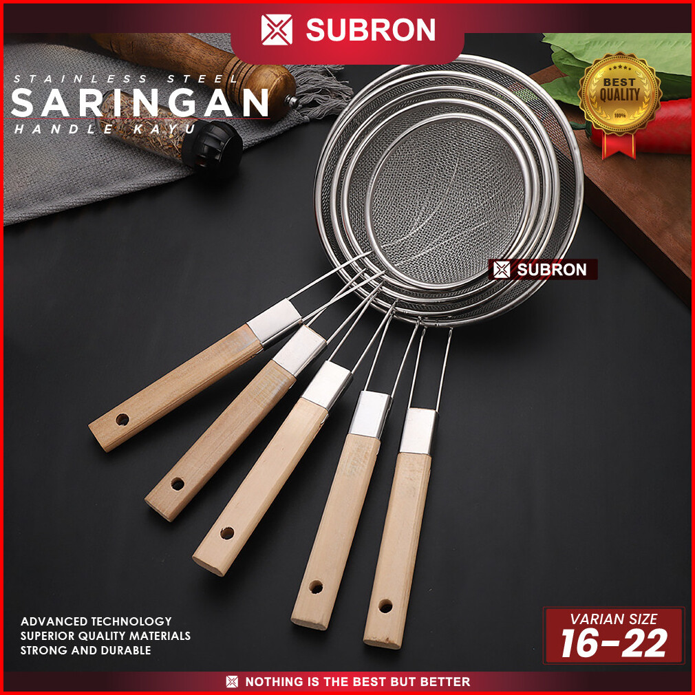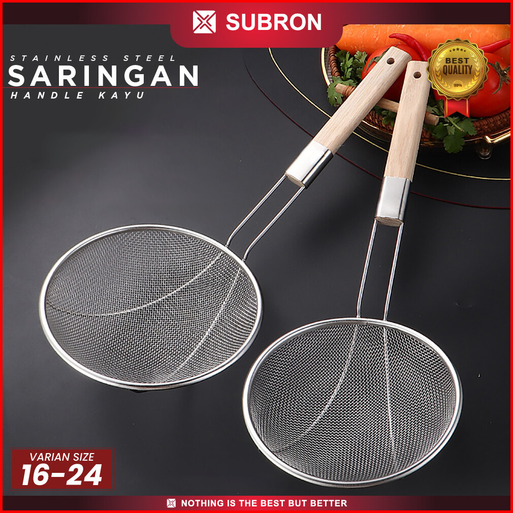 Subron Saringan Handle Kayu Stainless 16cm 18cm 20cm 22cm 24cm Peniris Minyak Goreng Noddle Sayuran Multifungsi