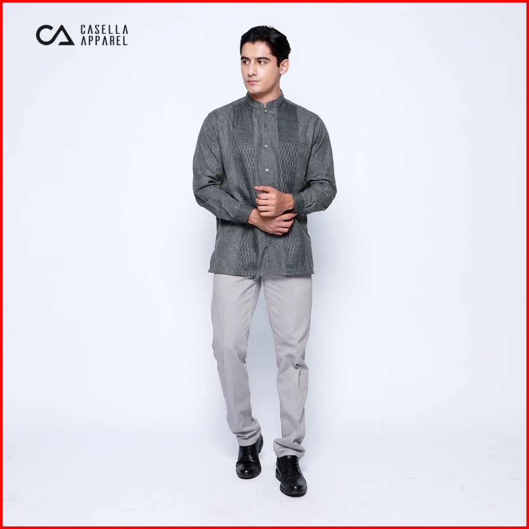 Casella Baju Koko Pria Lengan Panjang Vertical Pattern Baju Koko Lengan Panjang Khalid
