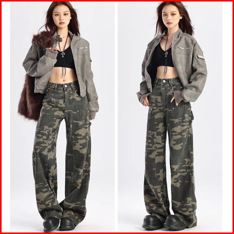 Keygirl Oversize 5xl Celana Cargo Korean Style Cargo Camo Loose Cargo Pants Original Beberapa Saku Cargo Jeans Wanita Hi