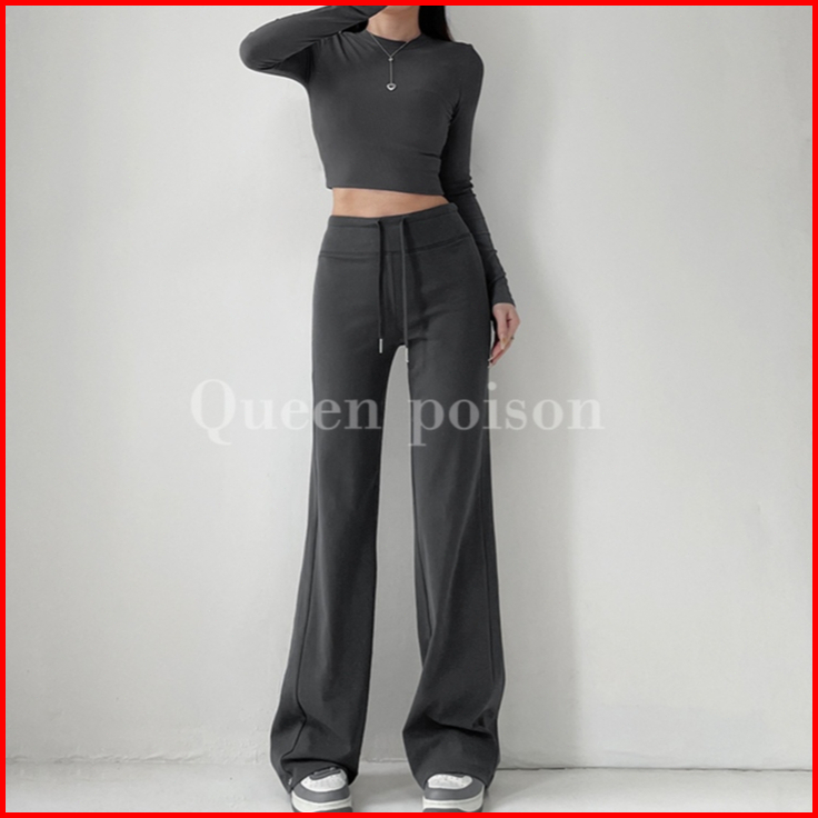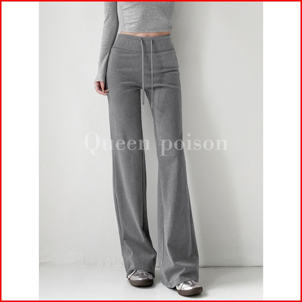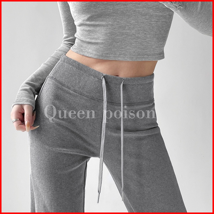 Riod Aoer 2025 Baru Olahraga Kasual Lebar Kaki Tinggi Pinggang Serut Celana Wanita - Abu-abu Muda-abu-abu