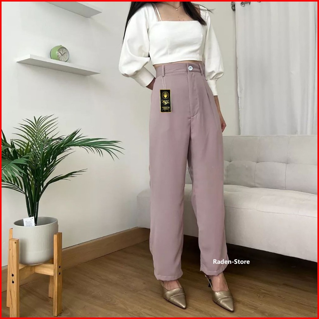 Raden Celana Loose Pants Trousers Wanita - Kulot Crinkle Highwaist Jumbo