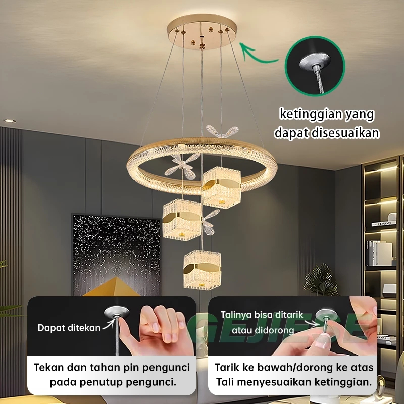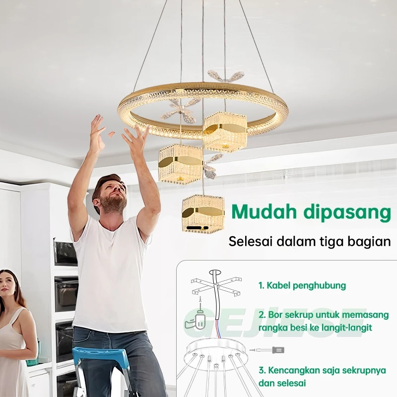 Lampu Gantung Kristal Minimalis 72W Led 3 Warna 40Cm Rings Lampu Gantung R Tamu