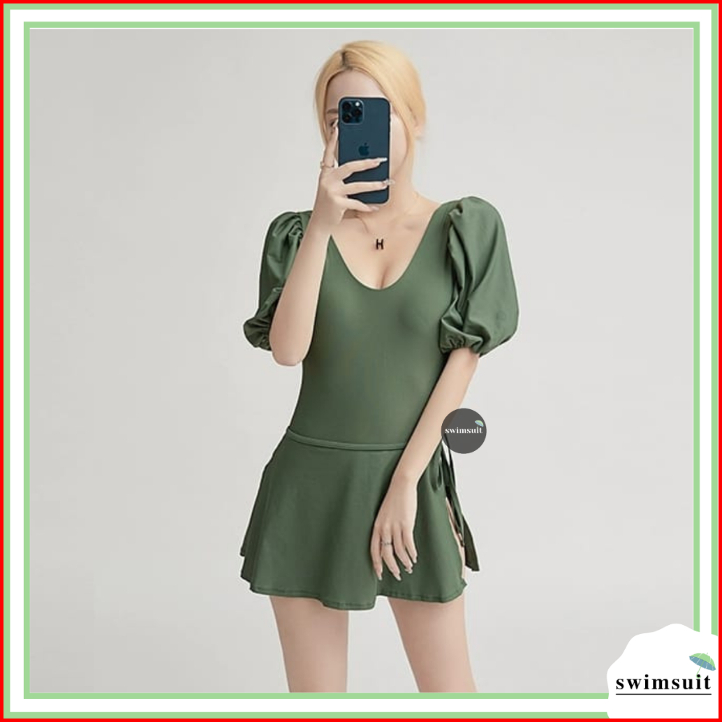 Swimsuit 2 Piece Swimdress Baju Renang Big Size Rok Dress Tutupan Outer Cover Up Bikini Auto Tutupin Belly Fat 8079