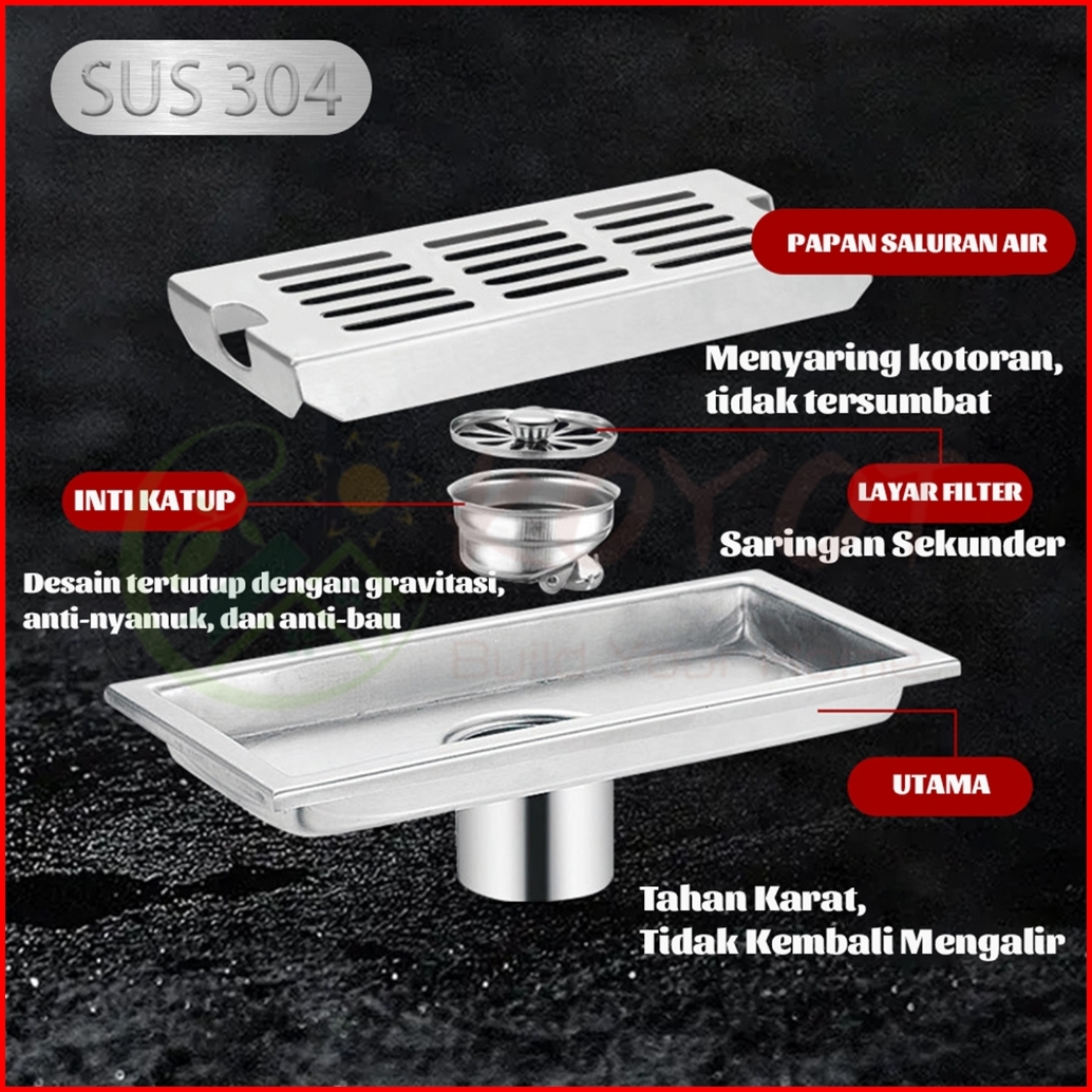 Koyot Floor Drain Saringan Got 304 Stainless Steel 10 20 30 60cm Saringan Got Kamar Mandi Anti Kecoa Anti Bau Floor Drai