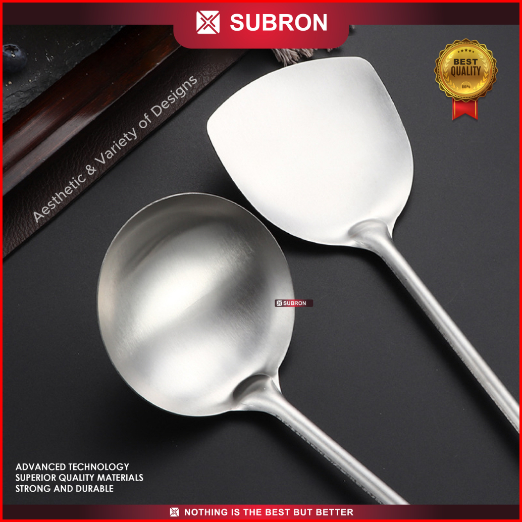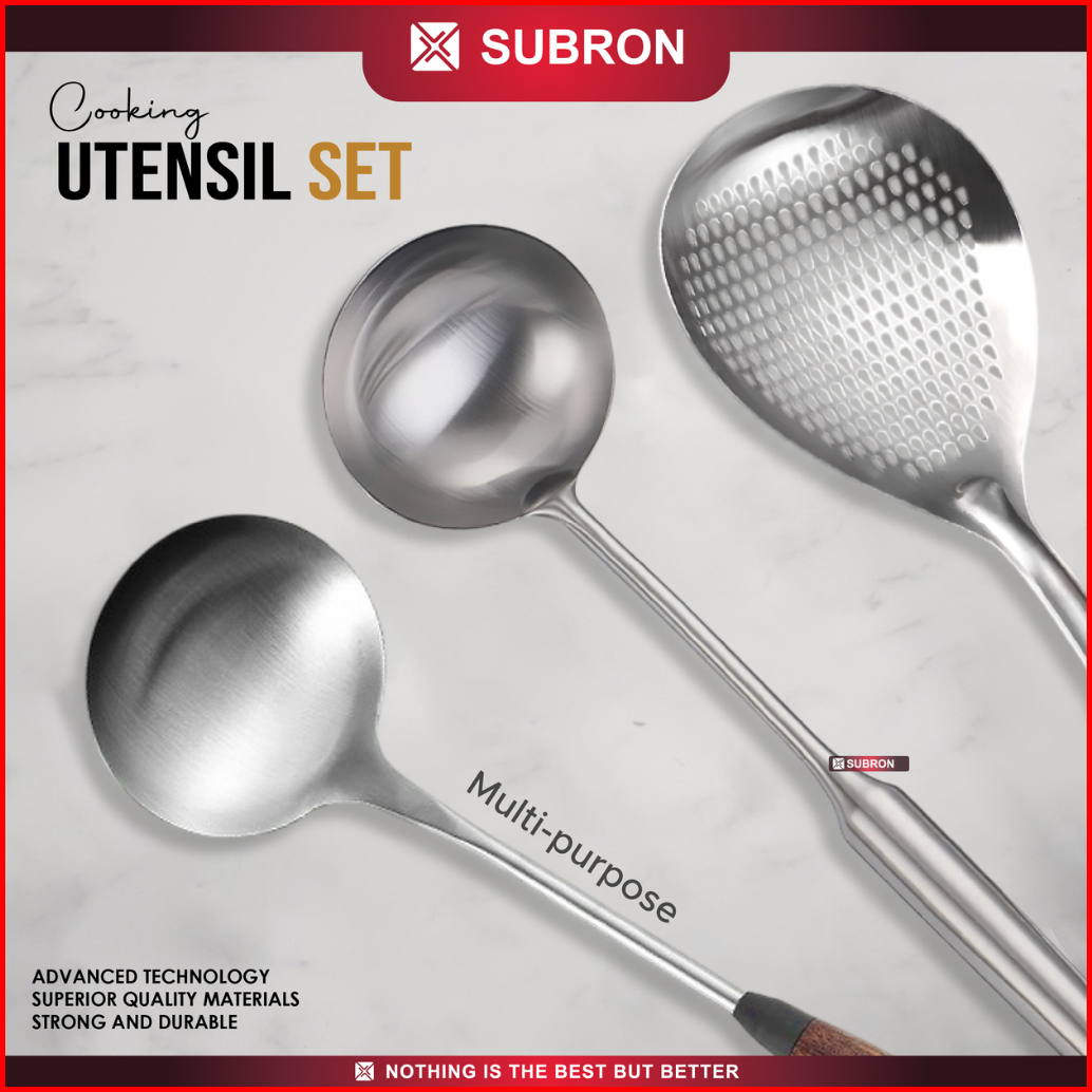 Subron Sutil Centong Sendok Saringan Peniris Minyak Spatula Lubang Skimmer Full Stainless Gagangan Kayu Peralatan Masak
