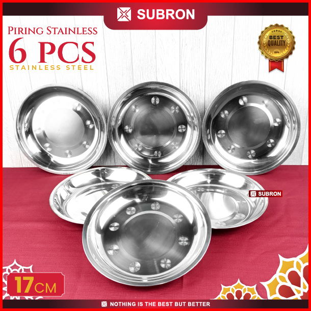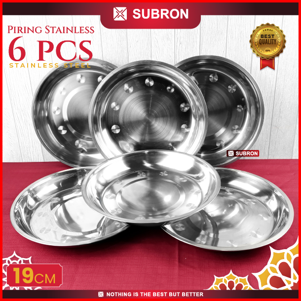 Subron Set 6pcs Piring Besar Nampan Saji Bulat 15cm 17cm 19cm Alat Makan Multifungsi Stainless