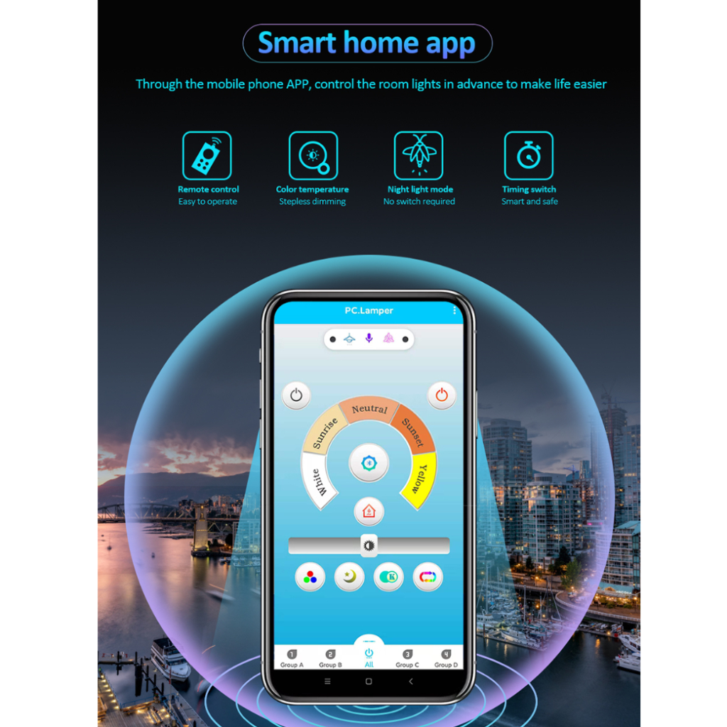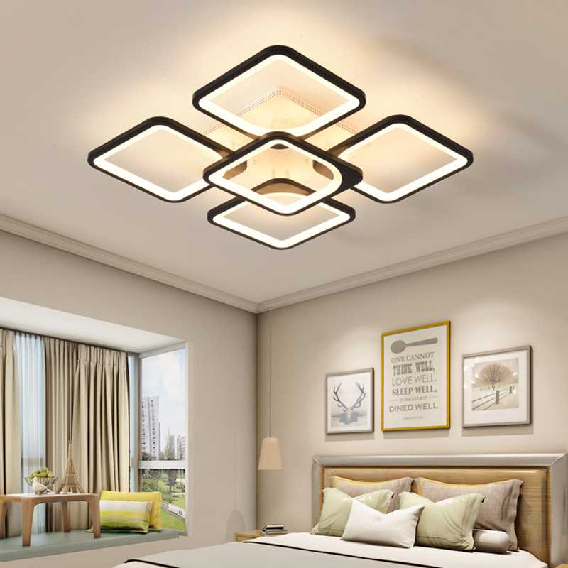 Lampu Plafon Gantung Minimalis 5 Square Head 3 In 1 Color 60W Ceiling + Remote Control