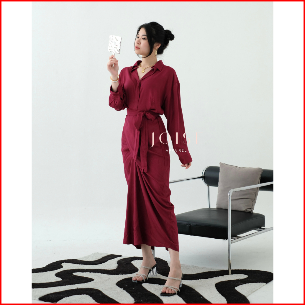 Joise - Kylie Wrap 3in1 Shirt Dress Tali Maxi Dress Panjang Lilit Dress Wanita Polos