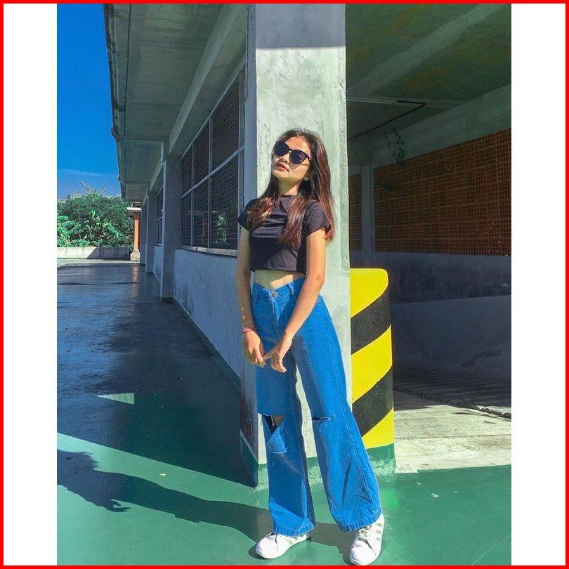 Celana Bawahan Haighwaist Kulot Jeans Wanita Celana Kulot Haighwaist Jeans Sobek