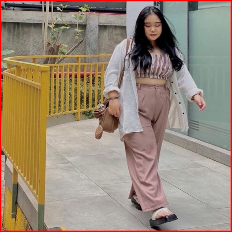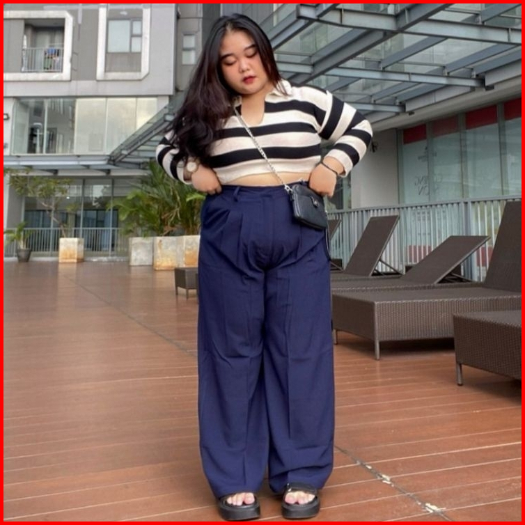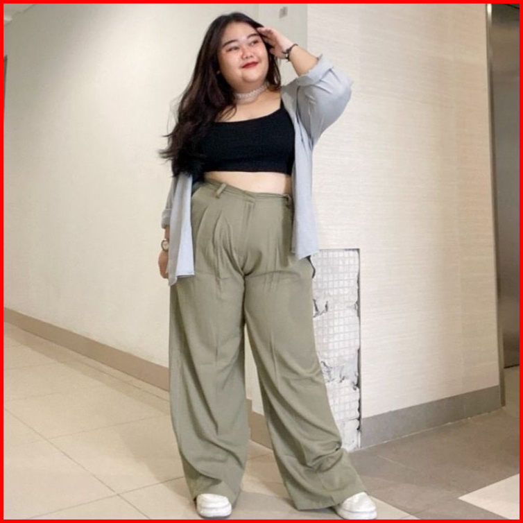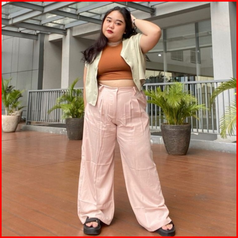 Loose Pants Trousers Jumbo Big Size Highwaist Wanita Anti Kusut - Celana Kulot Highwaist Wanita Bahan Jatuh Celana Kanto