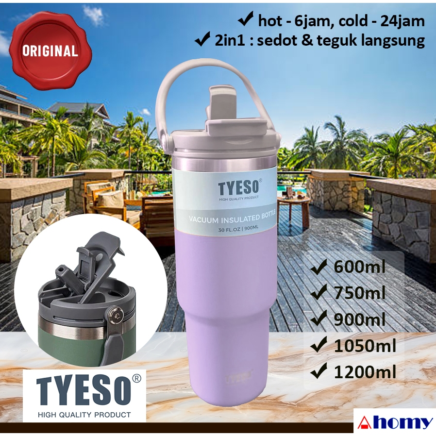 tumbler tyeso original stainless 304 hot cold 2in1 handle botol minum portable teguk sedot vacuum tahan panas dingin
