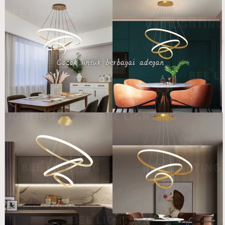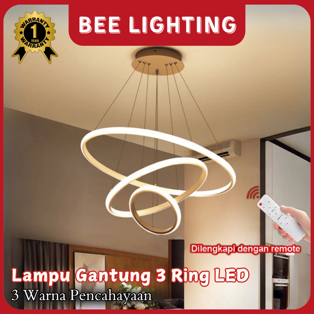 Lampu Gantung Minimalis Led 3 Ring Modern R Tamu Lampu Gantung 3 Warna + Remote Lampu R T