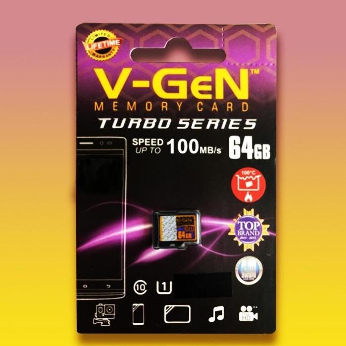 Micro SD Card V-GeN 64GB Class 10 TURBO 100MB/s - Non Adaptor Memory Card Otg